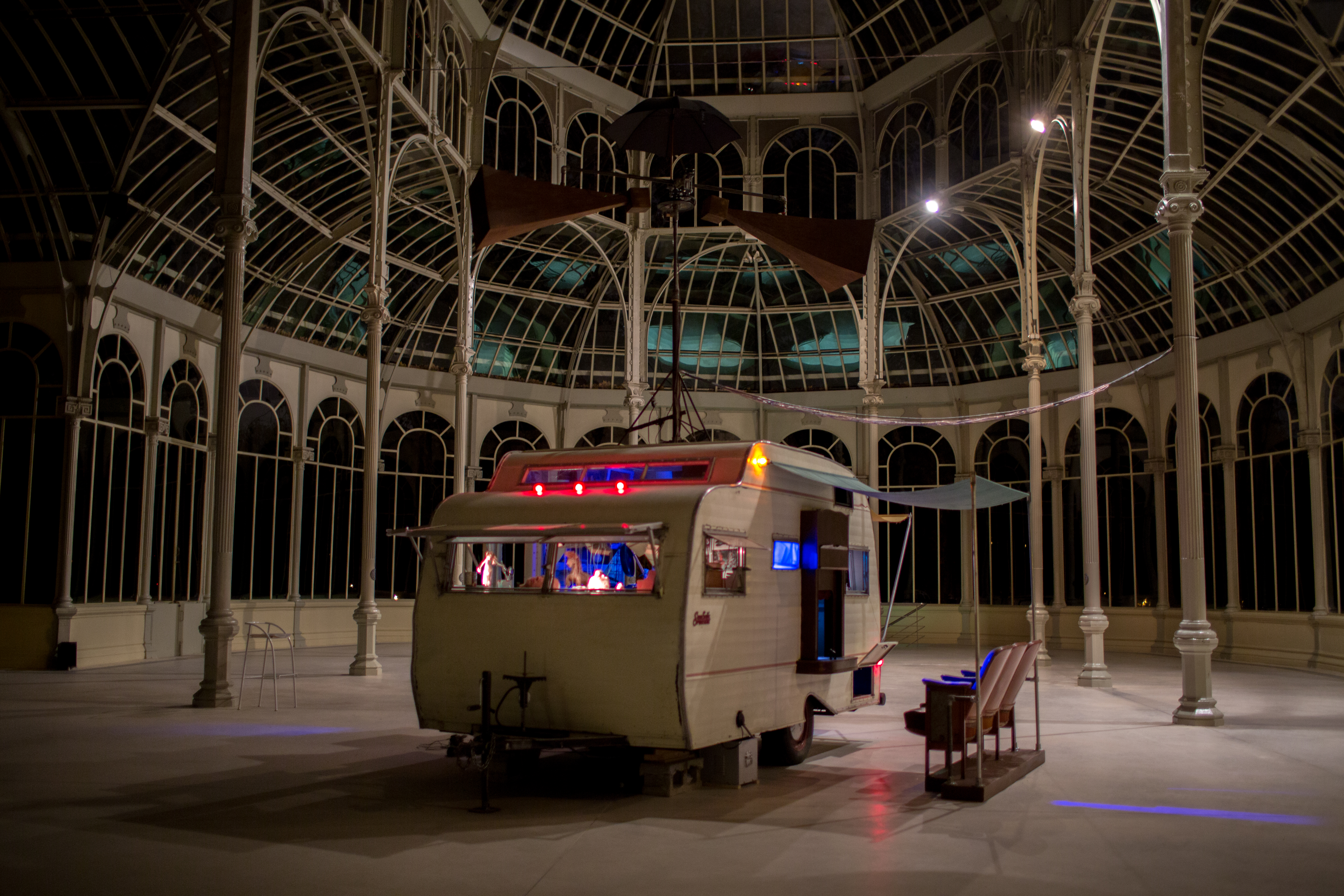 The Marionette Maker; 2014; robotic puppets, sound, lights. Shown here at The Crystal Palace in Madrid.